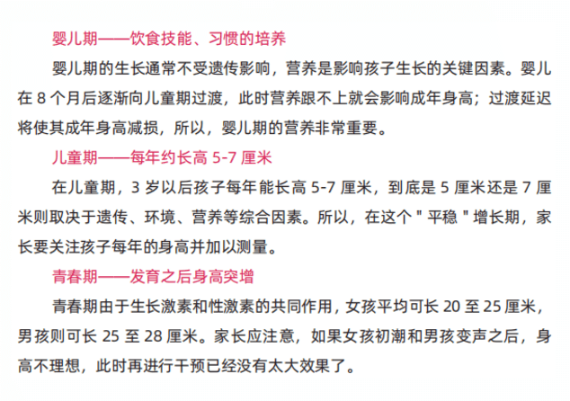 據(jù)統(tǒng)計,87%的家長沒有監(jiān)測孩子身高的習(xí)慣,不能及時發(fā)現(xiàn)孩子身高的異常;只有20%的家長經(jīng)常過問孩子身高并進(jìn)行監(jiān)測和記錄;當(dāng)3歲以上孩子出現(xiàn)每年身高增長不到5厘米,比周圍同齡的孩子矮半個頭、總是坐在教室第一排的時候,90%的家長選擇盲目等待,或者堅信孩子晚長,而錯過了最佳的干預(yù)時期。那么讓我們來看一下孩子不同時期的發(fā)育情況吧!