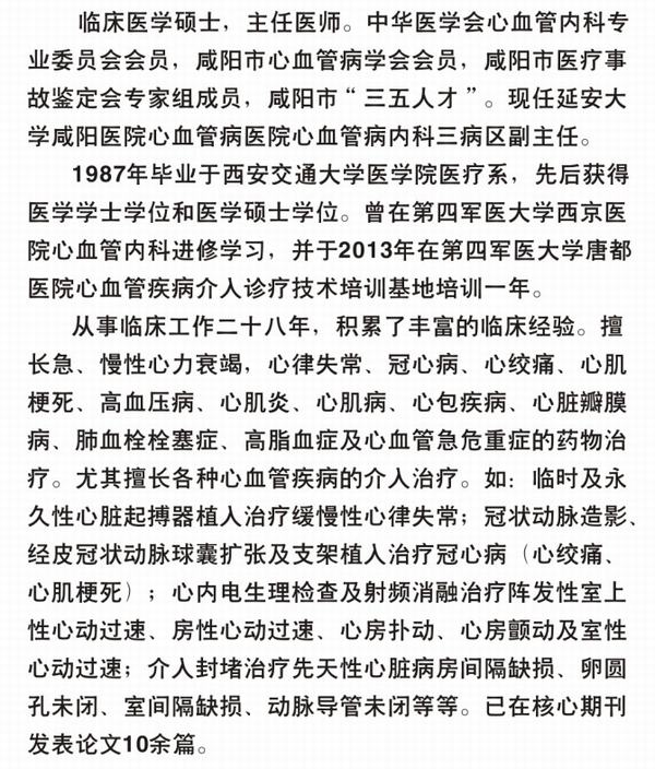 咸陽醫(yī)院心血管病醫(yī)院 心臟內(nèi)科專家團(tuán)隊(duì) 連載