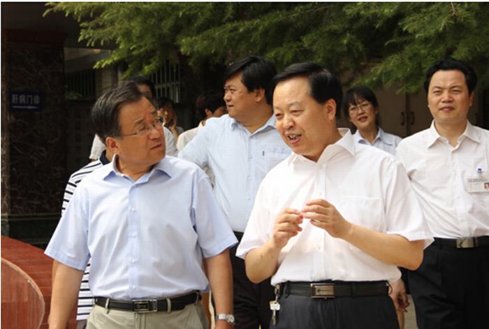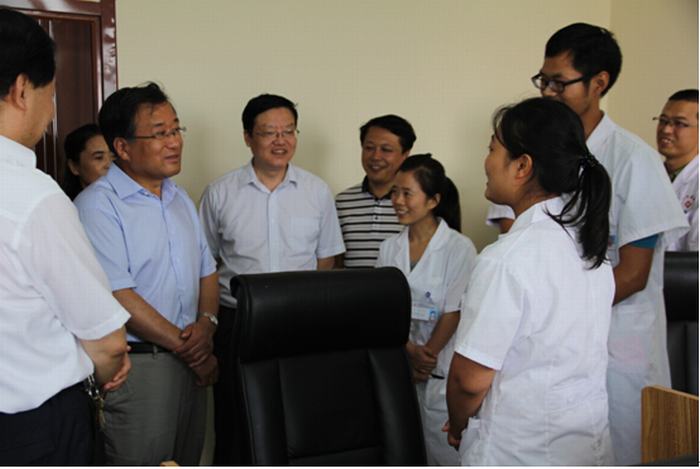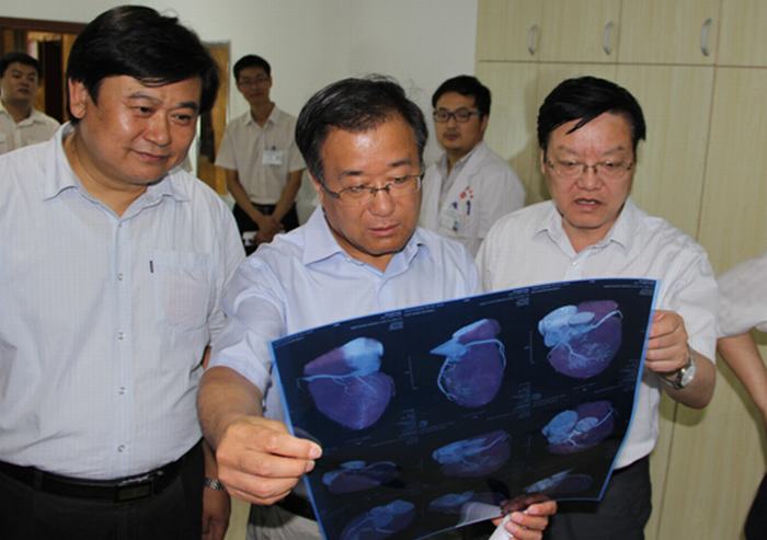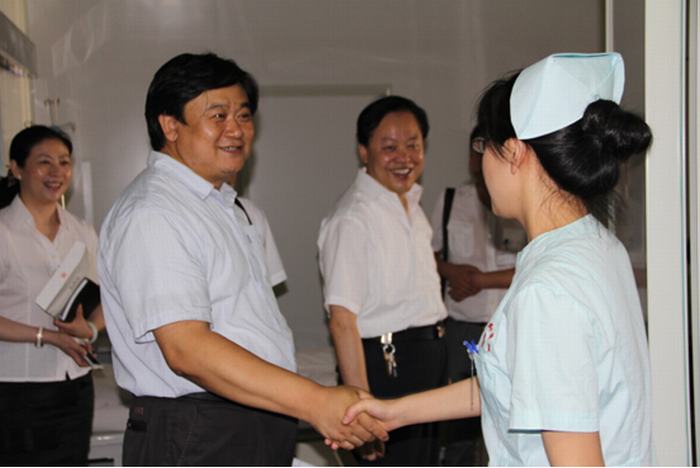 2014年8月21日,延安大學(xué)校長崔智林、延安大學(xué)醫(yī)學(xué)院院長韓繼明、副院長王璐一行三人來到延安大學(xué)咸陽醫(yī)院檢查指導(dǎo)工作。在董事長張群的陪同下,崔校長一行分別視察了檢驗科、功能科、體檢科、CT室、自動化中心藥房、心臟病科、神經(jīng)內(nèi)科VIP病區(qū)、并在心臟導(dǎo)管室觀摩了一例心臟介入手術(shù),當(dāng)來到心臟病二科時,延安大學(xué)實習(xí)學(xué)生把崔校長一行團團圍住,交談中,同學(xué)們感謝學(xué)校和醫(yī)院為他們提供了這么好的實習(xí)場所,帶教老師們認(rèn)真負(fù)責(zé),院方盡可能的為他們創(chuàng)造良好的學(xué)習(xí)和生活條件,在歷年的聯(lián)考和研究生考試中都取得了驕人的成績。崔校長聽到后非常欣慰并鼓勵同學(xué)們好好學(xué)習(xí),把延安精神帶到學(xué)習(xí)和工作當(dāng)中去,爭取更多的深造機會,為祖國醫(yī)學(xué)事業(yè)的發(fā)展貢獻(xiàn)自己的力量。