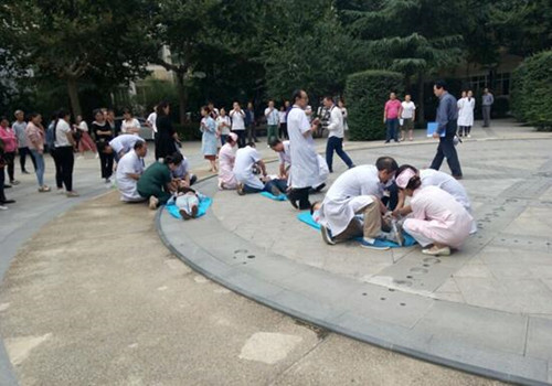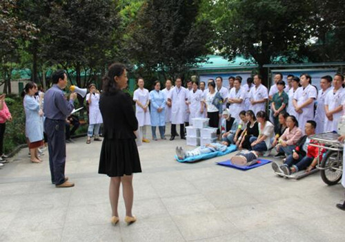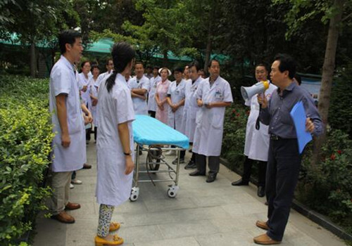 當(dāng)日下午,按照事先擬定的《破壞性地震醫(yī)療救治演練計(jì)劃》的安排,16點(diǎn)整,地震演練正式開(kāi)始。應(yīng)急醫(yī)療組所有成員積極響應(yīng),攜帶急救物資在3分鐘內(nèi)到達(dá)救治現(xiàn)場(chǎng),集結(jié)完畢。在張海濤總指揮的指導(dǎo)下,應(yīng)急醫(yī)療組立即啟動(dòng)醫(yī)療救治應(yīng)急預(yù)案。首先,急診醫(yī)學(xué)科護(hù)士長(zhǎng)對(duì)傷員進(jìn)行病情分級(jí)并分配給各小組。隨后,各組組長(zhǎng)安排組員積極投身醫(yī)療救治活動(dòng)中,協(xié)作救治。對(duì)心臟驟停的傷員,立即進(jìn)行心肺復(fù)蘇;對(duì)骨折的傷員先搬到安全的地方立即給予止血并進(jìn)行四肢固定;對(duì)因砸傷出血的患者進(jìn)行加壓包扎止血,對(duì)皮膚擦傷的患者進(jìn)行傷口清理……經(jīng)過(guò)現(xiàn)場(chǎng)緊急救治后,各組組長(zhǎng)向侯安剛副總指揮報(bào)告了傷員的救治情況,侯安剛副總指揮經(jīng)統(tǒng)計(jì)后立即向張海濤總指揮報(bào)告共計(jì)11名傷員,重傷3人,輕傷8人,經(jīng)緊急救治,所有傷員均病情穩(wěn)定。最后,張海濤常務(wù)副院長(zhǎng)、徐京華副院長(zhǎng)對(duì)演練進(jìn)行了總結(jié)并指出需要進(jìn)一步改進(jìn)之處,此次地震演練按照計(jì)劃圓滿完成。