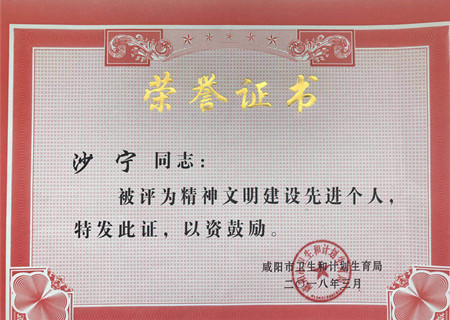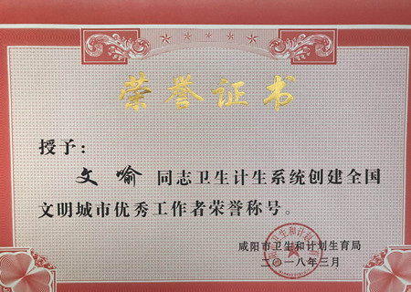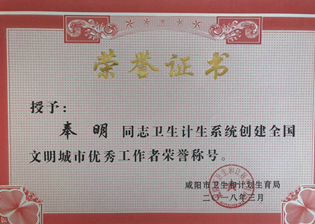 為進(jìn)一步調(diào)動(dòng)全市參與到鞏固和深化文明創(chuàng)建成果活動(dòng)中來,咸陽(yáng)市衛(wèi)生和計(jì)劃生育局決定對(duì)衛(wèi)計(jì)系統(tǒng)創(chuàng)文工作中涌現(xiàn)出的工作扎實(shí)、成績(jī)突出的先進(jìn)集體和先進(jìn)個(gè)人給予表彰鼓勵(lì)。當(dāng)天,延安大學(xué)咸陽(yáng)醫(yī)院被授予“創(chuàng)建全國(guó)文明城市工作優(yōu)秀單位”稱號(hào),我院沙寧院長(zhǎng)助理被評(píng)為精神文明建設(shè)先進(jìn)個(gè)人,李鵬主任、張宗民部長(zhǎng)、奉明、文喻、魏紅娟等5名同志被授予“咸陽(yáng)市衛(wèi)生計(jì)生系統(tǒng)創(chuàng)建全國(guó)文明城市優(yōu)秀工作者”榮譽(yù)稱號(hào)。