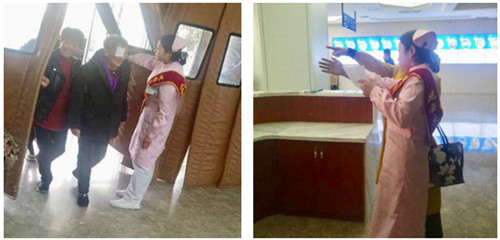 朱雨晴(圖一圖二)與其他導(dǎo)醫(yī)正在為患者服務(wù)