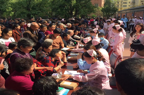 本次義診組織內科病院所屬科室呼吸內科、消化內科、血液內分泌科、腎病內科、精神科、腫瘤內科等十個科室20余位知名專家親臨現(xiàn)場,面對面的為百姓解除疾苦,為群眾免費測血壓、測血糖,開展常見病、慢性病義診咨詢,就安全用藥,合理飲食,生活習慣等進行健康宣教。此次活動還組織了一個互動環(huán)節(jié),8名中醫(yī)科護理人員現(xiàn)場帶領盡300余名群眾進行現(xiàn)場體驗降壓操,活動現(xiàn)場人山人海,氣氛高漲。專家教授們一邊耐心細致地解答就診群眾提出的關于各種疾病日常護理問題,同時還通過發(fā)放宣傳單的形式,積極向群眾普及健康知識。本次義診接診患者500余名,監(jiān)測血糖155人次,測血壓300余人次,發(fā)放健康宣教資料800余份。除了現(xiàn)場診療,活動現(xiàn)場也特別注重健康知識宣教,避免群眾盲目相信網絡中一些缺乏求證的醫(yī)學信息,導致上當受騙走彎路等情況發(fā)生;站在專業(yè)角度為患者指引正確的就醫(yī)方向,提供專業(yè)的就醫(yī)建議?,F(xiàn)場秩序井然有序,活動結束后,群眾們紛紛豎起了大拇指,給本次活動點贊。