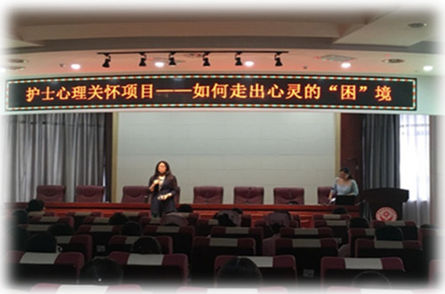 關(guān)注患者,更關(guān)注護(hù)士,在當(dāng)前的醫(yī)療環(huán)境下,護(hù)士的工作壓力越來(lái)越大,為了緩解護(hù)士的心理壓力,樹(shù)立“快樂(lè)工作,快樂(lè)生活”的信念,延安大學(xué)咸陽(yáng)醫(yī)院護(hù)理部2018年啟動(dòng)了護(hù)士心理關(guān)懷項(xiàng)目,2018年5月15日下午,以“ 如何走出心靈的‘困’境 ”為主題的心理講座在延安大學(xué)咸陽(yáng)醫(yī)院腦科樓三樓會(huì)議室舉行。這是近一年來(lái)的第三次心理講座,也是5.12國(guó)際護(hù)士節(jié)的系列活動(dòng)之一。本次活動(dòng)邀請(qǐng)到了國(guó)家二級(jí)心理咨詢師、咸陽(yáng)市心理健康教育研究會(huì)楊春榮理事,參加本次講座的還有護(hù)理部楊敏主任,各系統(tǒng)總護(hù)士長(zhǎng)及有心理疏導(dǎo)需求各個(gè)科室護(hù)士。為了使疏導(dǎo)有針對(duì)性,護(hù)理部前期特意發(fā)放了護(hù)士壓力源調(diào)查問(wèn)卷,本次講座以調(diào)查中排名靠前的五個(gè)問(wèn)題展開(kāi),從“現(xiàn)實(shí)世界”走進(jìn)“心理世界”與護(hù)士進(jìn)行了一次心靈深處的對(duì)話。