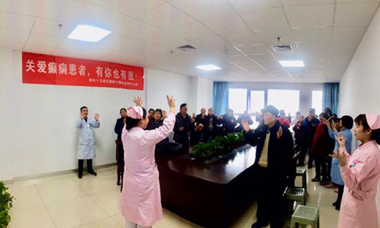 劉娜護(hù)士長(zhǎng)帶領(lǐng)大家一起做“腦保健操”