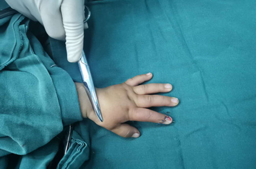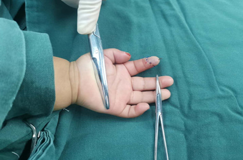 2019年1月8日16:00我院骨科二病區(qū)急診收治一2歲患兒,患兒王XX,2歲1月,女性,系外傷致左示指單指完全離斷。