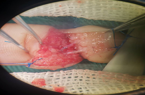 經(jīng)科主任侯曉進(jìn)主任組織,科內(nèi)認(rèn)真討論,排除手術(shù)禁忌,急診手術(shù)行斷指再植術(shù),保指治療?;純耗挲g較小,離斷指體為末節(jié),指體血管、神經(jīng)細(xì),手術(shù)難度高,風(fēng)險(xiǎn)較高。