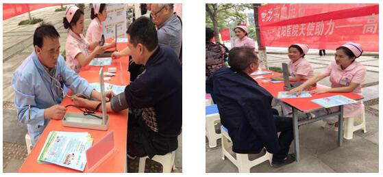 活動(dòng)現(xiàn)場(chǎng)擺放的高血壓健康知識(shí)展架,簡(jiǎn)單易懂、圖文并茂的宣傳手冊(cè),精神風(fēng)貌良好的醫(yī)護(hù)團(tuán)隊(duì)無不顯示著我們的精心準(zhǔn)備。義診開始,大家秩序井然依次進(jìn)行血壓的測(cè)量、咨詢、綜合評(píng)估、健康宣講等。