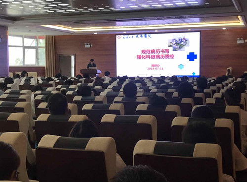 為進(jìn)一步提升病歷書寫能力,強(qiáng)化科室病歷質(zhì)控管理,開展優(yōu)質(zhì)病歷展評,提高病歷內(nèi)涵質(zhì)量,7月11日下午14:00,由質(zhì)控辦組織在外科病院二樓會議室召開了“病歷質(zhì)量提升月啟動會”和“提升病歷書寫能力,強(qiáng)化科室質(zhì)控力度”培訓(xùn)會,代理院長張海濤、相關(guān)職能部室負(fù)責(zé)人、各臨床、醫(yī)技科室負(fù)責(zé)人及質(zhì)控醫(yī)師共計(jì)約130人參加了培訓(xùn),會議由質(zhì)控辦陳青副主任主持。