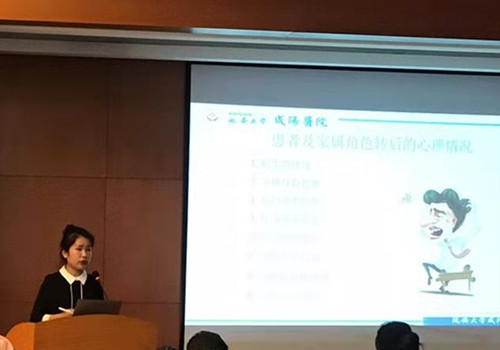 獨特的情景展示,巧妙地將溝通中的語言技巧,標準禮儀展示的栩栩如生!真實自然,學員們充分利用將授課老師講授的理論與實踐訓練的禮儀技巧相結(jié)合,運用在臨床護理工作中的敏感溝通場景下,用其優(yōu)美的儀表,端正的態(tài)度,親切的語言,優(yōu)雅的舉止,創(chuàng)造出了一個友善親切,健康向上的人文環(huán)境。