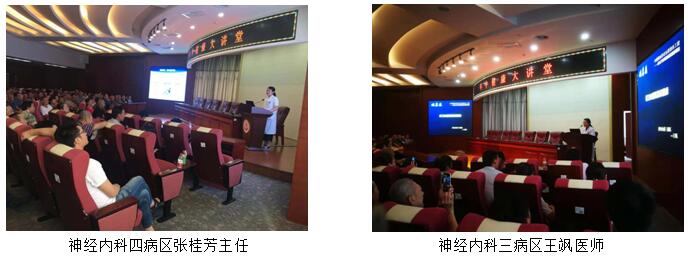 本次講座由神經(jīng)內(nèi)科一病區(qū)梁偉娟護士長主持,神經(jīng)內(nèi)科四主任張桂芳和神經(jīng)內(nèi)科三病區(qū)王颯醫(yī)生分別以PPT形式進行《如何遠離卒中》和《保衛(wèi)血管就是保衛(wèi)健康》為主題的知識講解。