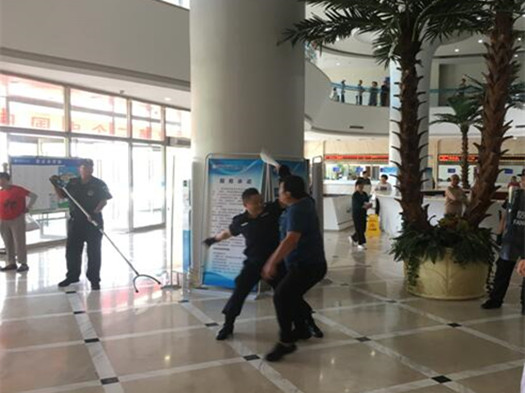 為迎接建國70華誕,進一步做好醫(yī)院安全防范工作,提高醫(yī)務人員安全防范意識,增強保衛(wèi)人員應急處事能力,維護醫(yī)院財產(chǎn)安全,8月16日下午我院保衛(wèi)科聯(lián)合文林路派出所警務工作站,在腦科樓門診進行現(xiàn)場防暴應急演練。