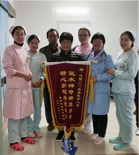 張女士于2019年11月4日以“反復(fù)胸悶氣短伴心悸三年加重一月”之主訴收住延大咸陽醫(yī)院心胸外科,診斷為“心臟瓣膜病”。經(jīng)心胸外科醫(yī)生與家屬及患者共同商議后決定于11月11日行“二尖瓣生物瓣膜置換術(shù)+左房減容術(shù)+三尖瓣成形術(shù)”。術(shù)后返回監(jiān)護室時身上插滿了各種管路,深靜脈、動脈置換、氣管插管、胸腔引流管等等,這么多管路無疑增加了護理工作的難度。并且患者全麻清醒后,因為經(jīng)口氣管插管無法溝通成了我們護理的一大障礙,即使這樣,CCU一群可愛的天使們臉上從來沒有失去過笑容,她們耐心的詢問,精心護理,為鼓勵患者無意間豎起的大拇指、因患者肚子不適灌滿熱水袋、因患者低熱進行擦洗……足夠讓張女士感到安心。這一點一滴的舉動讓張女士感受到親人般的溫暖,也更增強了她戰(zhàn)勝病魔的信心,在護士們細(xì)致入微的精心的護理下,張女士很快轉(zhuǎn)回普通病房。她見到家人的第一句話就是“疾病無情,人間有愛”。還沒出院的張女士就迫不及待讓家人給CCU送來了錦旗。