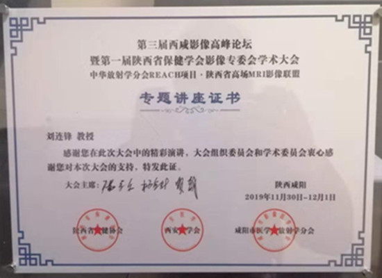 2019年11月29日至12月1日由陜西省保健學會、西安醫(yī)學會、咸陽市醫(yī)學會主辦,西安交通大學第二附屬醫(yī)院、西安市中心醫(yī)院及陜西中醫(yī)藥大學第二附屬醫(yī)院承辦,《實用放射學雜志》、延安大學咸陽醫(yī)院和西安市第三醫(yī)院協(xié)辦的2019年《第三屆西咸影像高峰論壇暨第一屆陜西省保健學會影像專委會學術大會•中華放射學會REACH項目•陜西省高場MRI影像聯(lián)盟》在咸陽麗彩•天祺酒店順利召開。會議由咸陽市放射學會副主任委員兼秘書長劉連鋒主任和西安市放射學會副主任委員兼秘書長高燕軍主任主持開幕式,參加本次會議的領導有陜西省保健學會、西安、咸陽醫(yī)學會領導、西安市中心醫(yī)院、陜西中醫(yī)藥大學第二附屬醫(yī)院領導及我院張海濤院長。國內(nèi)省外知名專家21人、中放常委、省主委以上人員5人、陜西省知名專家30余人、陜西省院長及副院長10人,陜西省地市級10余家醫(yī)院,全省各地影像界430余名代表參加了會議。91歲高齡董季平教授、我院腦血管病院張東亞主任參加會議全程,我院醫(yī)學影像科劉連鋒主任帶領張媛、張濤、蔡雷、蔣小鋒、張飛、呂琳、邵艷麗等25人參加了本次大會。