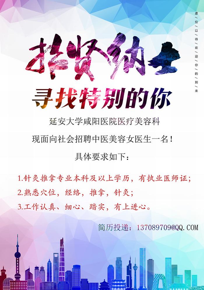 延安大學咸陽醫(yī)院招聘中醫(yī)美容女醫(yī)生