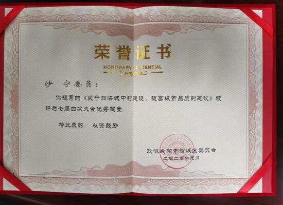 ——沙寧院長助理提案獲渭城區(qū)七屆四次大會(huì)優(yōu)秀提案表彰