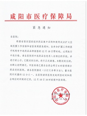 為了積極實施國家藥品集中采購和使用試點全國擴圍,我院在接到《咸陽市落實國家組織藥品集中采購和使用試點擴大區(qū)域范圍工作方案》等文件后。院領(lǐng)導(dǎo)高度重視,立即安排有關(guān)部室深入了解藥品帶量采購政策,藥學(xué)部有關(guān)人員系統(tǒng)學(xué)習(xí)國家政策和我市具體實施方案,全力以赴配合我市醫(yī)保局落實此項工作,通過院長辦公例會、院周會等多種渠道強調(diào)該工作的重要性,并協(xié)調(diào)相關(guān)部門優(yōu)化工作流程,積極推進該項工作的順利落實。