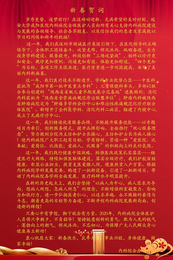 延安大學(xué)咸陽(yáng)醫(yī)院內(nèi)科病院新春賀詞