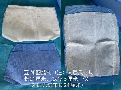 近期病毒肆虐,國(guó)家的防護(hù)物資緊缺,尤其是口罩消耗量大,庫存吃緊,我院放療科李月華通過查閱資料得知無紡布具有防潮、透氣、容易分解、可循環(huán)再用等特點(diǎn),也是防護(hù)服和手術(shù)衣的制作材料,其滅菌級(jí)別和材質(zhì)比普通醫(yī)用外科口罩還要優(yōu)良,并且媒體也有報(bào)道西安交大二附院,以及內(nèi)蒙、長(zhǎng)沙等各大醫(yī)院醫(yī)護(hù)人員也在自力更生采用此材料進(jìn)行口罩制作,其防水及透氣性能俱佳,于是放療科李月華通過學(xué)習(xí)和總結(jié),為科室同事和身邊防護(hù)口罩不足的部分工作人員,縫制了幾十只口罩供大家交替使用,很大程度上緩解了本科室人員醫(yī)用口罩不足的問題?,F(xiàn)將制作方法推薦給大家: