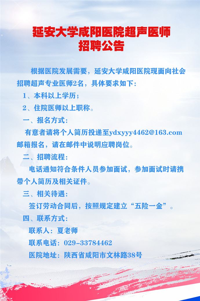 延安大學(xué)咸陽醫(yī)院超聲醫(yī)師招聘公告