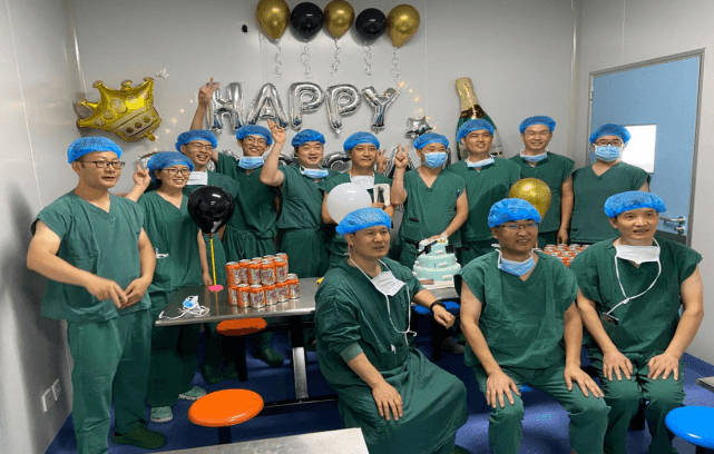 今天的手術(shù)室與往日不同, 就在大家做工作前的準(zhǔn)備時(shí),12個(gè)手術(shù)間的控制面板同時(shí)播放著舒緩的輕音樂,整個(gè)科室都被美妙的音樂聲籠罩著。這時(shí),傳來(lái)了一聲溫暖的祝福: “今天是2020年8月19日,第三個(gè)中國(guó)醫(yī)師節(jié),首先向所有的醫(yī)師們致敬!回首往昔,我們步履鏗鏘,齊筏共進(jìn)。展望未來(lái),我們信心滿滿,執(zhí)著追求。祝大家節(jié)日快樂!”聽到祝福的所有人你看我,我看你,相視一笑,大家天真的笑臉正是這個(gè)大家庭獨(dú)有的默契。緊接著控制面板上出現(xiàn)了手術(shù)室每一位護(hù)士的聲音,頓時(shí),整個(gè)科室都被暖心的祝福語(yǔ)和音樂聲包圍。護(hù)士長(zhǎng)提前帶領(lǐng)大家精心布置了茶歇室,還特地準(zhǔn)備了多層蛋糕,讓大家在手術(shù)室度過了一個(gè)難忘的醫(yī)師節(jié)。她說:“每一句祝福語(yǔ)都是科室所有人員提前錄制編輯完成,只是想通過這種簡(jiǎn)單的方式傳遞對(duì)醫(yī)生最真摯的祝福。護(hù)士和醫(yī)生從來(lái)都是一個(gè)隊(duì)伍里的戰(zhàn)友,一個(gè)屋檐下的家人,都是使命的守護(hù)者。在這個(gè)特別的日子,用我們的心意表達(dá)對(duì)朝夕相處的醫(yī)師們最溫暖和最誠(chéng)摯的祝福?!笔盏襟@喜的每位醫(yī)生臉上都露出了花兒般的笑容。