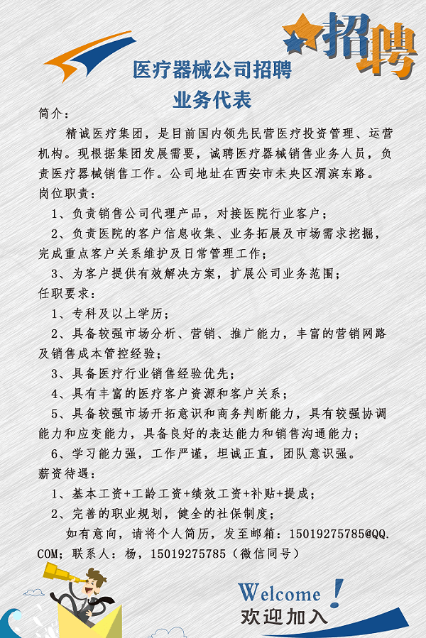 醫(yī)療器械公司招聘業(yè)務(wù)代表