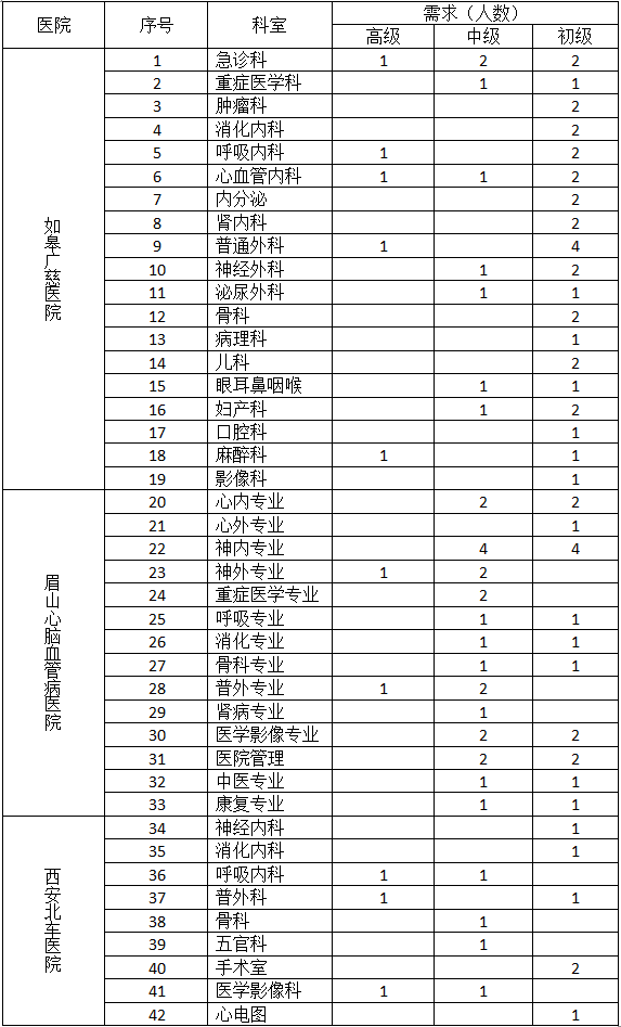 因業(yè)務(wù)發(fā)展需要,現(xiàn)以上醫(yī)院面向社會招聘各專業(yè)臨床醫(yī)師,招聘條件、招聘崗位及招聘人數(shù)如下: