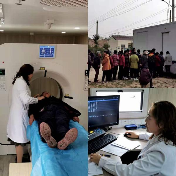 為了做好義診活動,我院提前組織了由腦血管、心血管、眼科、呼吸內(nèi)科、疼痛科、生殖醫(yī)學(xué)科等科室專家及骨干醫(yī)生組成的醫(yī)療團隊,帶足各類便攜醫(yī)療設(shè)備,全方面做好準備,以飽滿的熱情投入此次義診活動。這次義診還特地準備了一臺128排的車載CT。該設(shè)備采用方鋼骨架、承重性好、安全性高、半掛車距離地面僅1米,方便患者上下檢查。超靈敏,快速一體化探測器技術(shù)、真正實現(xiàn)了低劑量掃描要求,配合NDI微劑量迭代技術(shù),imA智能毫安調(diào)控技術(shù)、使各種場合下、各部位低劑量掃描得以實現(xiàn),特別是肺部低劑量掃描,能夠清晰顯示早期的磨玻璃病變,能夠清晰地顯示肺間質(zhì)的變化。本次義診為139名群眾現(xiàn)場進行了CT檢查。