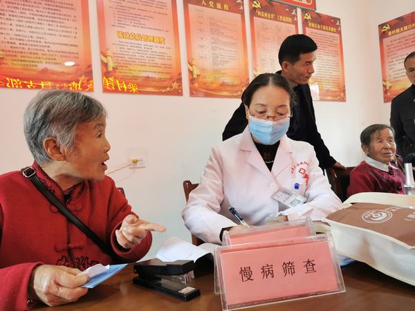 活動現(xiàn)場,專家們耐心地為每一位村民進行病情分析,認真解答 患者對病情所提出的疑惑,并對群眾進行了健康指導(dǎo),問診、測血壓、做心電圖,檢查腰腿、講授、傳播健康知識,并細心詢問群眾的身體狀況、耐心分析病情、講解注意事項。王丙聚副院長親自為病人診治,現(xiàn)場醫(yī)生重點對群眾發(fā)病率較高的高血壓、糖尿病、白內(nèi)障等慢性病進行了面對面、零距離的解疑釋惑,工作有條不紊地進行著、活動現(xiàn)場氣氛熱烈。