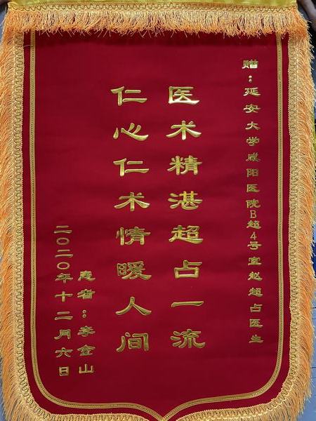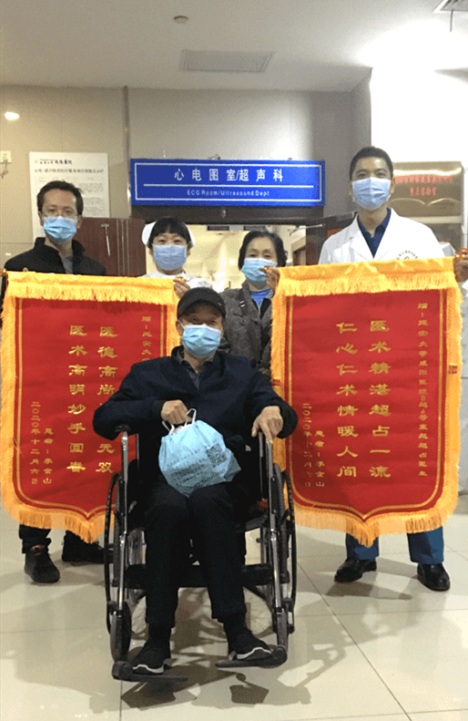2020年12月11日下午,超聲科診室門口上演了溫馨一幕:患者李某攜其家屬捧著“醫(yī)德高尚,瞾星無雙,醫(yī)術(shù)高明,妙手回春”、“醫(yī)術(shù)精湛,超占一流,仁心仁術(shù),情暖人間”的錦旗,再三感謝趙超占醫(yī)生和南曌星醫(yī)生對其疾病的精確診斷以及無微不至的關(guān)懷?;颊呒覍俦硎荆夯叵氪舜尉驮\經(jīng)歷,感嘆過程驚心動魄,是你們認(rèn)真負(fù)責(zé)的工作態(tài)度和精湛的醫(yī)術(shù)救了我家老頭子,而且也改變了我們對醫(yī)生們的一些偏見,非常感謝醫(yī)院培養(yǎng)出這么優(yōu)秀的員工和優(yōu)秀的團隊,太謝謝你們了!