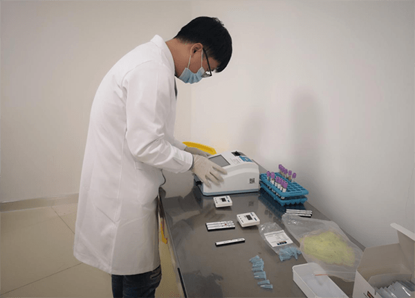 醫(yī)生為患者血標(biāo)本檢測(cè)