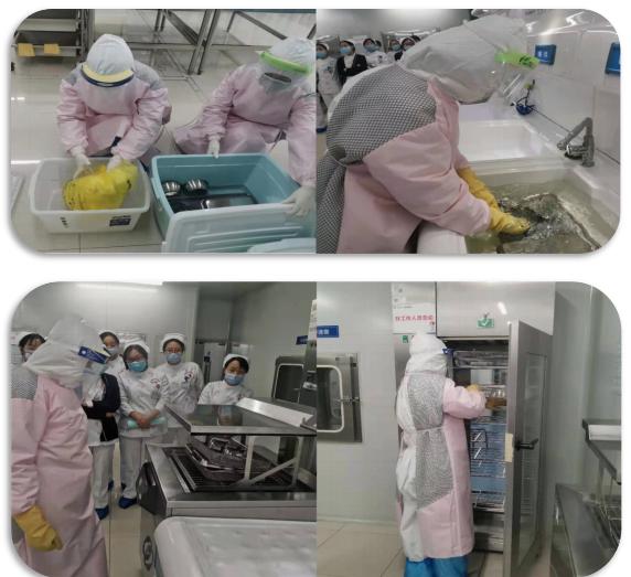 應(yīng)醫(yī)院新冠疫情防控工作的最新要求,為防范新型冠狀病毒感染,確?;颊?、員工的身體健康與生命安全,我院外科系統(tǒng)于2020年12月10日下午4點(diǎn)在消毒供應(yīng)室開展了“疑似及新冠患者使用的復(fù)用器械清洗消毒處置流程”應(yīng)急演練;本次演練由外系王長(zhǎng)寧總護(hù)士長(zhǎng)組織,消毒供應(yīng)室護(hù)士長(zhǎng)同麗娜主持,外科系統(tǒng)23位護(hù)士長(zhǎng)及科室骨干現(xiàn)場(chǎng)觀摩。