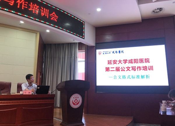 為貫徹落實集團公司規(guī)范化管理要求,加強機關(guān)隊伍建設(shè),進一步提高領(lǐng)導(dǎo)干部和管理人員的理論素養(yǎng)、業(yè)務(wù)水平和領(lǐng)導(dǎo)能力,提高公文處理的規(guī)范化、制度化、科學(xué)化水平,5月13日下午,延安大學(xué)咸陽醫(yī)院在腦血管病院第三學(xué)術(shù)廳舉辦了第二屆公文寫作培訓(xùn)。此次培訓(xùn)以公文格式標準解析為主,培訓(xùn)由辦公室主任李鵬授課,醫(yī)院院長張海濤、副總會計師高霽,各職能部門負責(zé)人、主管、所有管理人員,各分院綜合辦工作人員,部分臨床醫(yī)技科室醫(yī)護人員及通訊員百余人參加了培訓(xùn)。