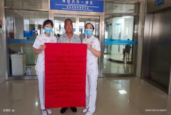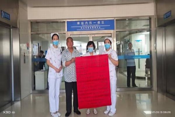 “你們辛苦了!”5月13日,延安大學(xué)咸陽醫(yī)院神經(jīng)內(nèi)科一病區(qū)的醫(yī)護人員剛嚴(yán)謹(jǐn)細(xì)致的交完班,就被一群人堵在了門口,原來是已經(jīng)康復(fù)的患者和家屬送來了給醫(yī)生和護士的兩封感謝信。