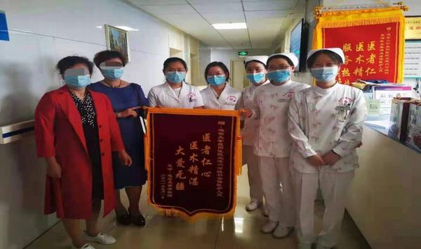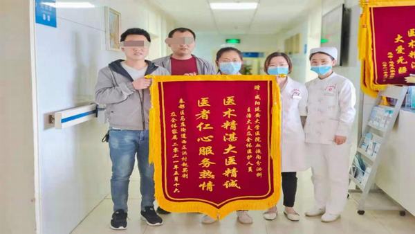 患者趙叔叔2020年10月因“咽喉部疼痛”入院,當(dāng)主管醫(yī)生診斷明確后,告知家屬病情時(shí),家屬崩潰了,問(wèn)醫(yī)生“這還能治好嗎?怎么會(huì)得這樣的病呀?”堂堂七尺男兒在醫(yī)生辦公室哭了……。住院期間醫(yī)生結(jié)合患者病情,精心制定詳細(xì)的治療計(jì)劃,護(hù)士提供貼心、專業(yè)的護(hù)理,對(duì)患者及家屬提出的問(wèn)題耐心、仔細(xì)的解答??吹交颊卟∏榈玫骄徑?,精神越來(lái)越好時(shí),家屬也有了信心,堅(jiān)持治療,經(jīng)過(guò)5個(gè)療程的治療,患者病情得到控制,自我感覺(jué)越來(lái)越好。為了表達(dá)感激之情,特意為全體醫(yī)護(hù)人員送來(lái)寫有“醫(yī)術(shù)精湛大醫(yī)精誠(chéng)、醫(yī)者仁心服務(wù)熱情”的錦旗。