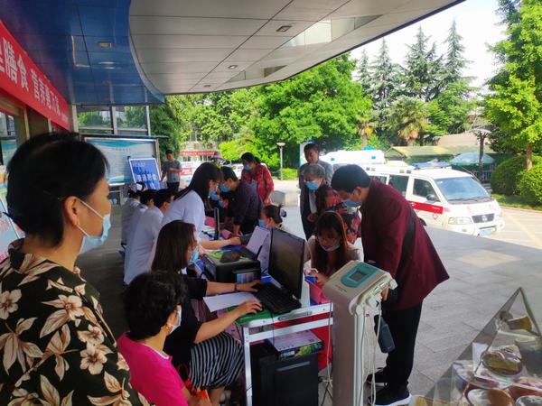 腎病科張靜主管護(hù)師熱情耐心的為患者和家屬免費(fèi)測量血壓,發(fā)放宣傳資料。