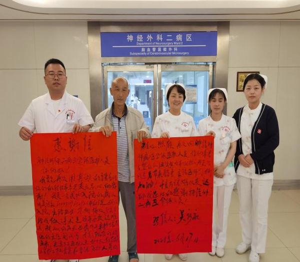 “護士,我明天要回家了,我想寫一封感謝信給你們.......”6月19日上午,神經(jīng)外科二病區(qū)的醫(yī)護人員在病房忙碌著,患者吳大叔小心翼翼的詢問著護士。