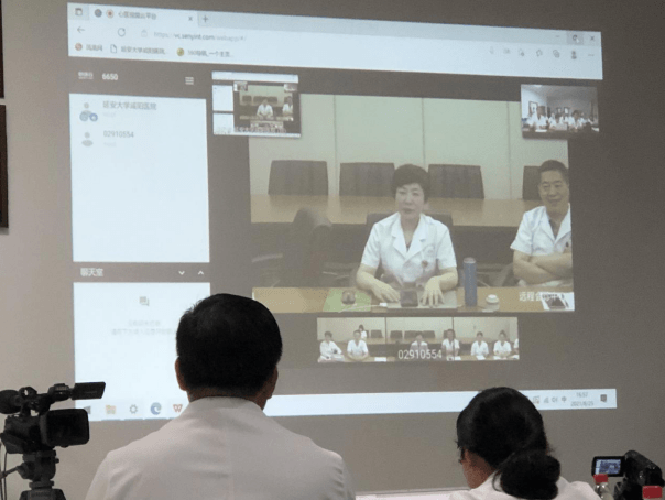 會后,陜西省人民醫(yī)院磁共振室張小玲教授醫(yī)、技、護團隊和我科進行學(xué)術(shù)討論交流,其中陜西省人民醫(yī)院磁共振室雷曉燕副主任指出PPT制作注意事項及參考文獻引用;張鑫技師長提出“頸部專用線圈”使用情況,李娟護士長提出“碘釓對比劑同日使用,先行CT增強還是MRI增強?有關(guān)腎功能異常時,檢查間隔時間?”等問題進行討論。最后,劉連鋒教授進行了會議總結(jié),他首先感謝了張小玲教授的指導(dǎo),同時也對各位臨床科室主任和醫(yī)生對醫(yī)技交流活動的大力支持表示感謝;他指出,醫(yī)技交流沙龍活動不是作秀、不是大家湊在一起熱鬧一下,而是認認真真地向授課老師學(xué)習(xí)、實實在在地互相交流溝通和提高,這一次的線上形式也為系列會議增添了新的渠道,同時也鍛煉了隊伍;他強調(diào),影像科的各位同仁要汲取張小玲教授的課程和指導(dǎo)內(nèi)容并再次學(xué)習(xí),提高自己在顱內(nèi)動脈夾層方面的認識,不斷使我們的診斷更加規(guī)范和標準,只有不斷提高對于疾病的影像診斷水平,才能更好地服務(wù)和造福廣大患者。