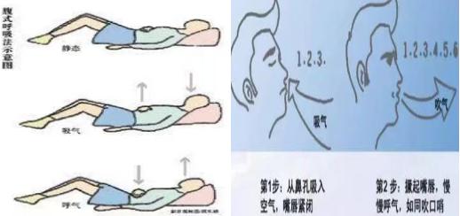 患者取舒適體位,自然放松身體,一手置于胸部,一手置于腹部,交錯(cuò)放置。 先用嘴快速呼氣,再閉嘴經(jīng)鼻慢慢深吸氣,腹部處的手隨之緩慢抬高。再將口唇縮成口哨狀呼氣,腹部處的手隨著緩慢呼氣而向內(nèi)凹陷。 可在口唇 15 cm 處放置一點(diǎn)燃的蠟燭,注意呼氣流量與縮唇口形大小適宜,以燭火微傾斜但不熄滅為宜,訓(xùn)練 3 ~ 5min,呼吸頻率為 8 ~ 10 次/min,呼氣與吸氣時(shí)間比為 2:1。