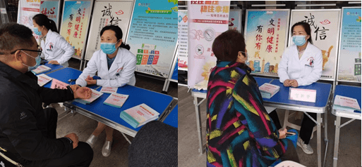 盡管秋風(fēng)蕭瑟,但義診活動現(xiàn)場依然如火如荼地進(jìn)行著:由殷本玲、張苗苗護(hù)士長帶領(lǐng)的護(hù)理團(tuán)隊(duì)同時(shí)也在積極開展高血壓科普宣傳工作。護(hù)士們就高血壓患者的家庭血壓測量及服用降壓藥物的注意事項(xiàng)進(jìn)行現(xiàn)場宣講;尤其是廣大群眾對高血壓的錯(cuò)誤認(rèn)知與測量血壓的誤區(qū)進(jìn)行耐心講解。簡單易懂的知識展架及圖文并茂的宣傳手冊為我們的義診增添了色彩,精神風(fēng)貌良好的醫(yī)護(hù)團(tuán)隊(duì)無不顯示著我們的精心準(zhǔn)備。