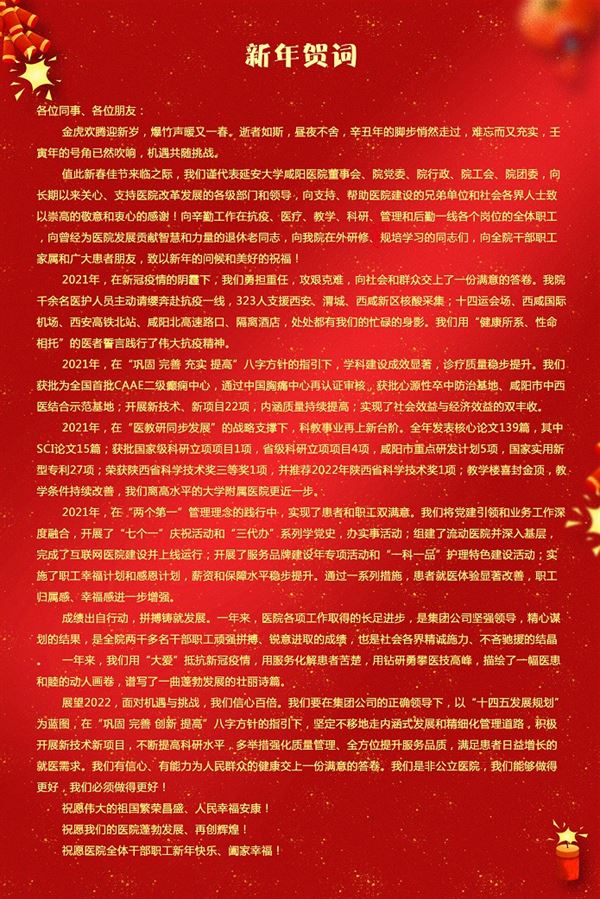 延安大學(xué)咸陽醫(yī)院新年賀詞