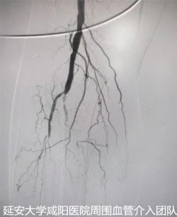 為了保肢,輾轉至我院心血管內科一病區(qū),吳棟梁副院長帶領周圍血管病介入團隊討論、經評估及術前準備后于3月24日對患者進行下肢動脈球囊擴張成形術,術中下肢動脈造影提示膝下脛前、脛后、腓動脈動脈閉塞,血管鈣化嚴重及側支血管形成較差(股腘動脈病變TASC II分型為D型);手術難度較大,手術失敗患者直接面臨截肢,在規(guī)范化的介入操作下最終開通患肢閉塞血管,術后肢體缺血癥狀立即改善,足背動脈搏動恢復;下肢變暖了,疼痛消失了,老爺子及家屬終于舒展開了愁眉,露出了久違的笑容。