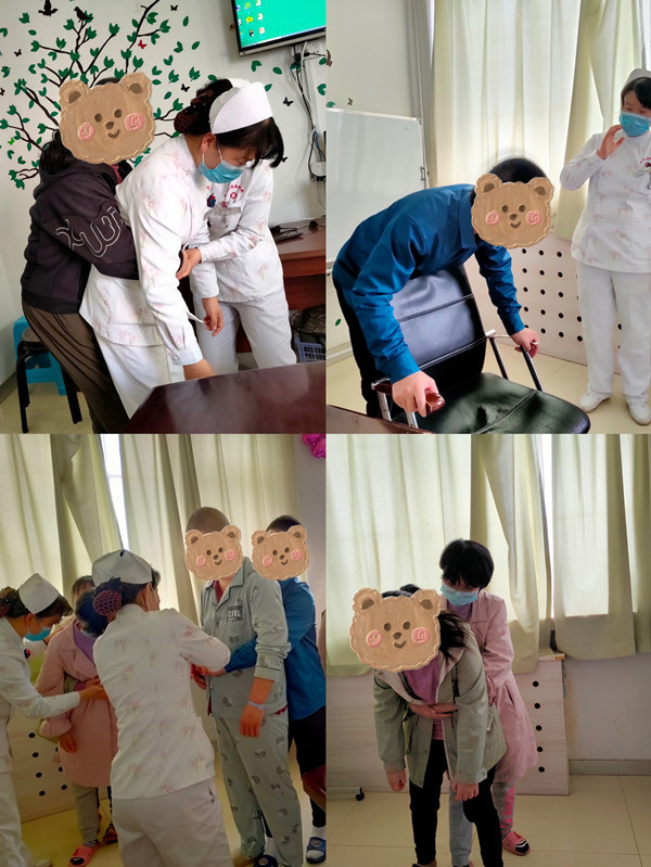 精神科患者服用抗精神病藥物常見的副反應(yīng)之一為吞咽困難,可能導(dǎo)致咳嗆或噎食,是危及患者生命安全的原因之一。為普及海姆立克法,提高患者及家屬自護、救護能力,在云科普節(jié)目后,王歌主管護師向患者講述了海姆立克法的原理,護士長薛娜與王歌詳細講解了海姆立克法的步驟及動作示范,并觀看視頻播放,從而讓在場家屬及患者更好的理解、學(xué)習(xí)海姆立克法。