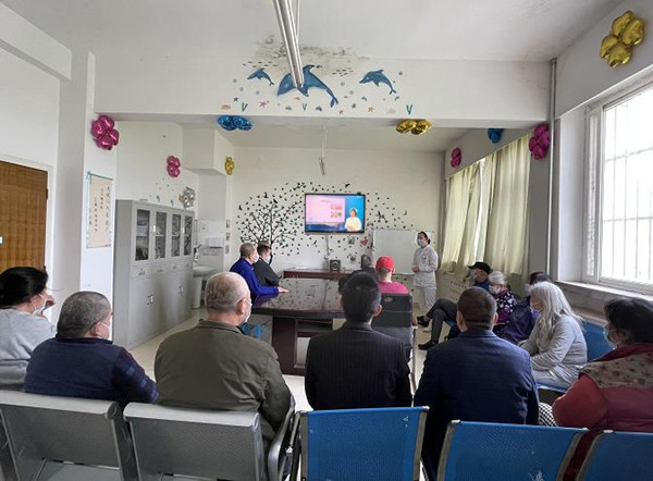 2022年4月20日15:30延安大學(xué)咸陽醫(yī)院精神科工作人員組織患者在活動室觀看我院康復(fù)專業(yè)組以“關(guān)注吞咽安全 實現(xiàn)自我照護”為主題的云科普節(jié)目。