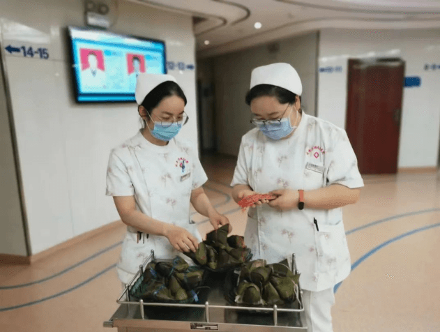 陪護的阿姨感慨地說道:“沒想到在醫(yī)院看病還能過端午,吃粽子,戴花繩,心里感到非常溫暖?!?