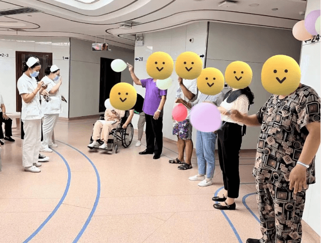 視頻結(jié)束,護士們?yōu)榛颊吆图覍俳M織了小游戲—拍氣球。通過有趣的小游戲讓大家全身心投入輕松愉快的活動氛圍中來。