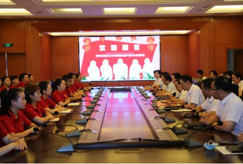 張海濤院長(zhǎng)在歡迎詞中對(duì)援滬醫(yī)療隊(duì)的工作給予了高度評(píng)價(jià)。他指出,援滬醫(yī)療隊(duì)隊(duì)員夜以繼日地超強(qiáng)度工作,為咸陽(yáng)爭(zhēng)了光,展現(xiàn)了陜西人吃苦耐勞的高貴品質(zhì);嚴(yán)謹(jǐn)、規(guī)范地落實(shí)防護(hù)流程的專業(yè)風(fēng)范,醫(yī)護(hù)人員零感染,展示了我院醫(yī)務(wù)人員的專業(yè)素養(yǎng)。醫(yī)療隊(duì)在滬抗疫期間的超強(qiáng)凝聚力、執(zhí)行力和親和力,體現(xiàn)了延安大學(xué)咸陽(yáng)醫(yī)院的優(yōu)秀醫(yī)院文化。援滬醫(yī)療隊(duì)隊(duì)員用自己的一言一行,讓醫(yī)院?jiǎn)T工“逢山開(kāi)道、遇水架橋”的鐵軍精神得到傳承、發(fā)揚(yáng),直面風(fēng)險(xiǎn),勇往直前、大愛(ài)無(wú)疆、人民至上的高貴品質(zhì)得到彰顯、升華。援滬醫(yī)療隊(duì)隊(duì)員是時(shí)代英雄,是最可愛(ài)的人。醫(yī)院以援滬醫(yī)療隊(duì)隊(duì)員為榮,并號(hào)召全體員工向援滬醫(yī)療隊(duì)隊(duì)員學(xué)習(xí)。