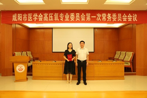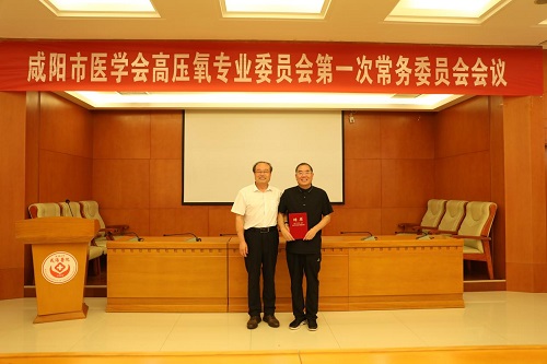 咸陽市醫(yī)學(xué)會(huì)會(huì)長(zhǎng)陳劍輝為高壓氧專業(yè)委員會(huì)主任委員慕廷民同志頒發(fā)聘書