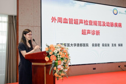 會議第二項為學術環(huán)節(jié),段云友教授授課題目《頭頸部血管超聲檢查常見問題的專家共識解讀》,并解讀了七大主要頸部血管超聲檢查常見問題。袁麗君教授授題為《外周血管超聲檢查規(guī)范及動脈疾病超聲診斷》,通過多個病例的深入分析,詳細介紹了下肢動脈常見疾病及特殊、疑難病例的超聲診斷。之后由我院超聲醫(yī)學科鄭德良主治醫(yī)師匯報題為《淺談我院血管超聲診療開展現(xiàn)狀》,簡單介紹了血管超聲的發(fā)展、前景展望以及詳細介紹了我院血管超聲的臨床應用和新技術開展情況。最后,趙永鋒教授帶來《下肢靜脈超聲操作演示》,趙永鋒教授通過現(xiàn)場規(guī)范化、標準化操作演示并詳細講解了下肢靜脈曲張臨床表現(xiàn),CEAP分級、超聲診斷的思路及方法等。會場學習氛圍濃厚,反饋收獲頗豐。