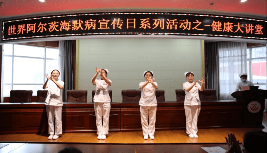 為進一步推進公眾對老年癡呆防治知識的知曉率,當日下午在腦血管病院三樓學術廳舉辦了健康大講堂活動,活動由鞏曉英主任主持,腦血管病院近百余患者及家屬參與。神經(jīng)內(nèi)科六病區(qū)宋宵主治醫(yī)師及神經(jīng)內(nèi)科??谱o士汪琦分別就阿爾茨海默病的預防及治療進行了講解?,F(xiàn)場觀眾情緒高漲、踴躍提問,趙志茹主任耐心為其答疑解惑,并提供了專業(yè)的指導幫助?;顒咏咏猜?,由4名護士帶動現(xiàn)場觀眾做起了健腦操,在患者爽朗的笑聲中將今日的活動推向了高潮。本次活動中也了解到老年人對這種方式予以充分的肯定和高度贊揚,紛紛表示提供的服務機會非常難得,值得推廣。